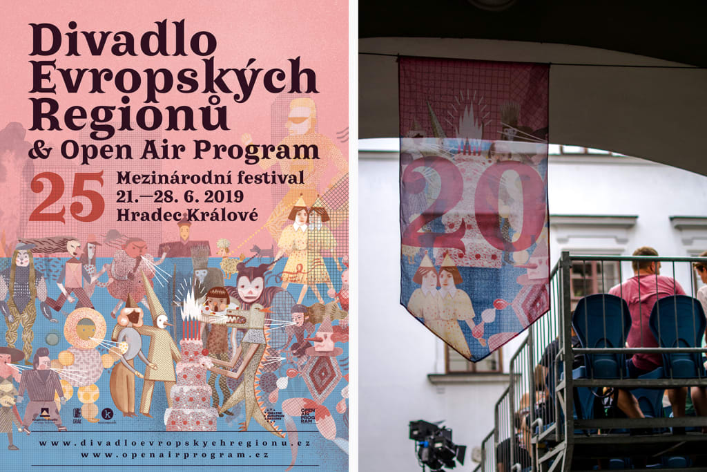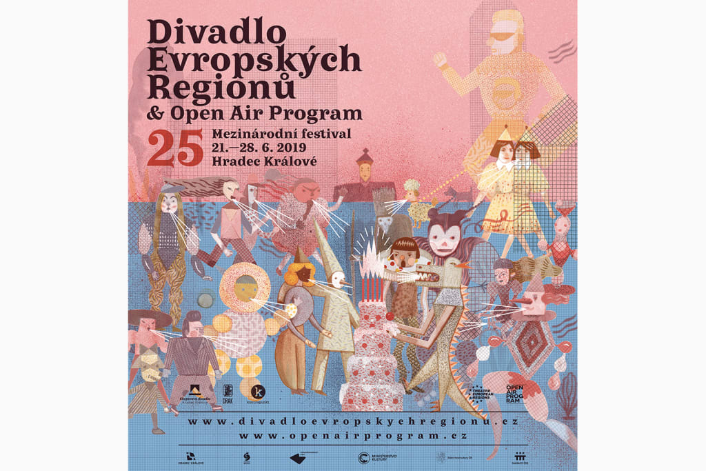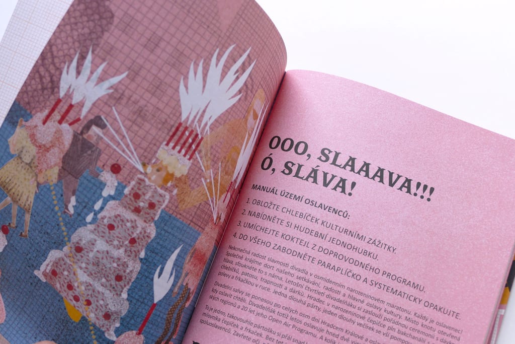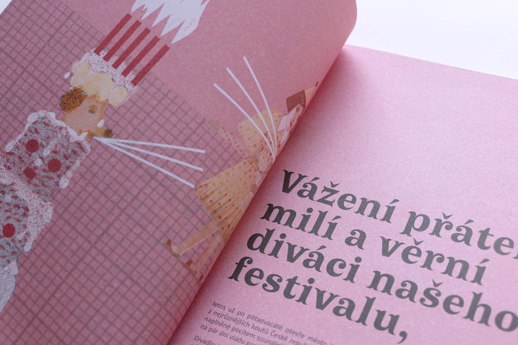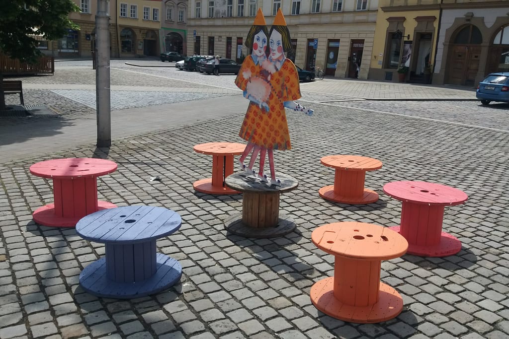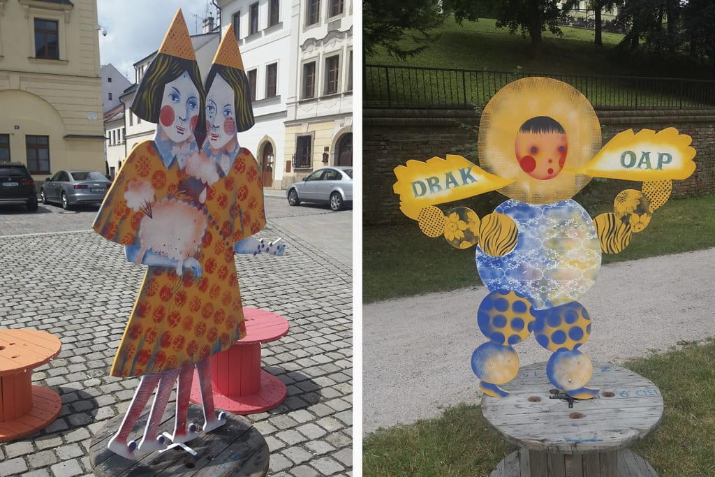 Illustrations came to life during this year in the form of ten large figures, which also served as pointers and guides to the individual stages of the theater in the city center. They were carved from plywood and hand-painted and sprayed on both sides.