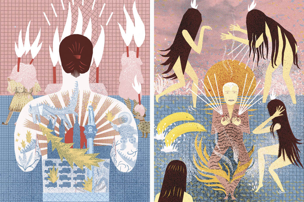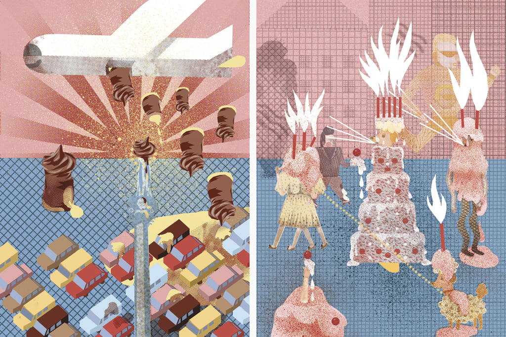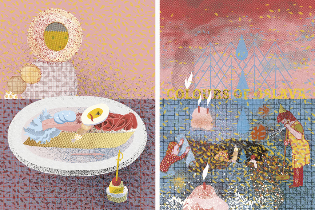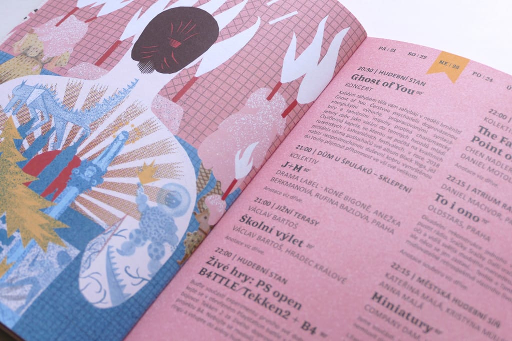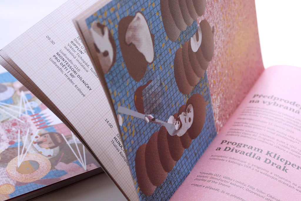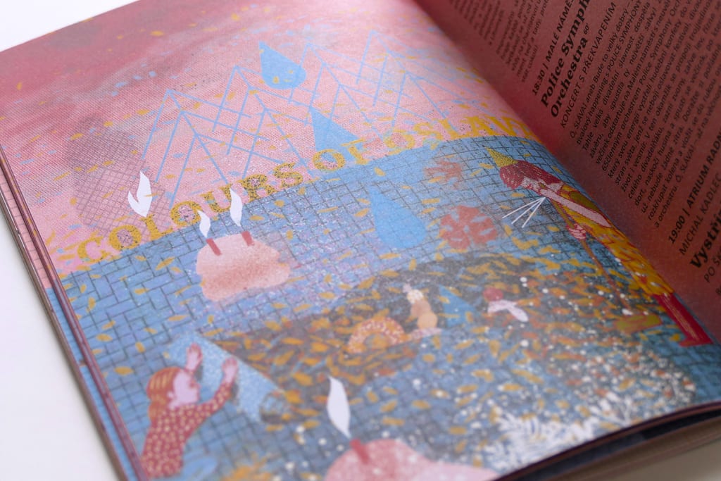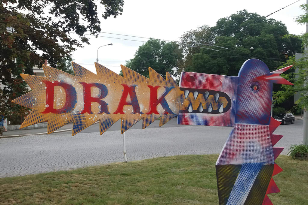 Illustrations came to life during this year in the form of ten large figures, which also served as pointers and guides to the individual stages of the theater in the city center. They were carved from plywood and hand-painted and sprayed on both sides.