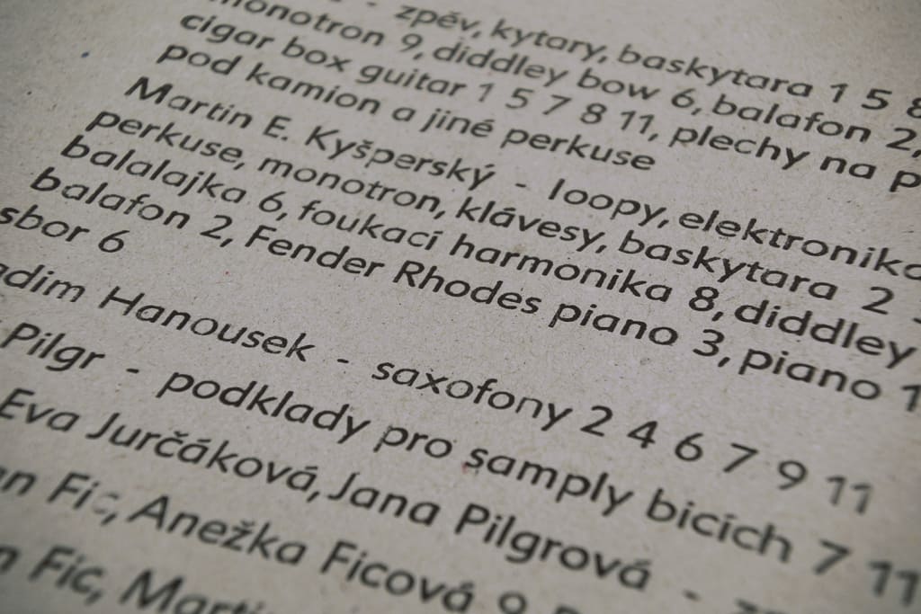 Obal na CD je ofsetem tištěná papírová pošetka s fotografií knihtiskové sazby, ze které byl tištěn obal LP 1:1.