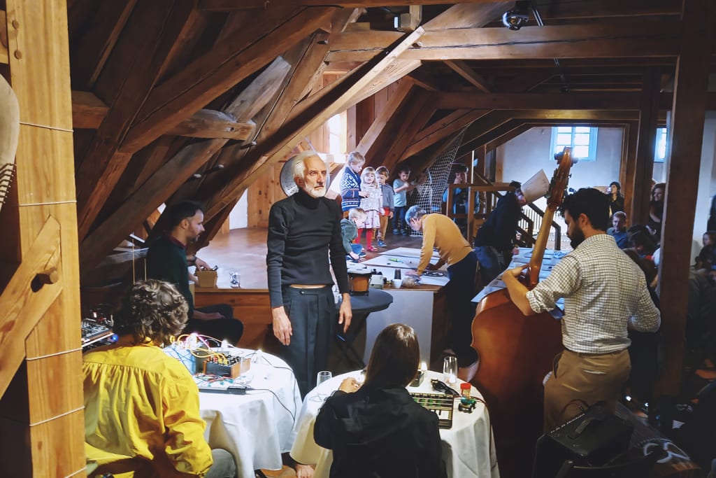 During concerts, people can watch the process of „švábení“ (the name of this technique according to Petr Nikl) directly under the hands of the performer or as a live projection on the screen.