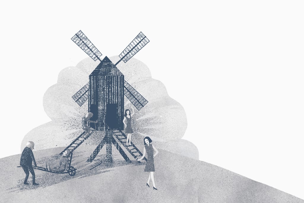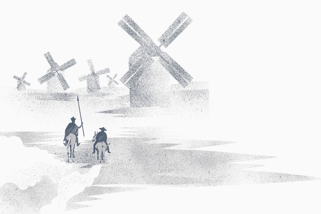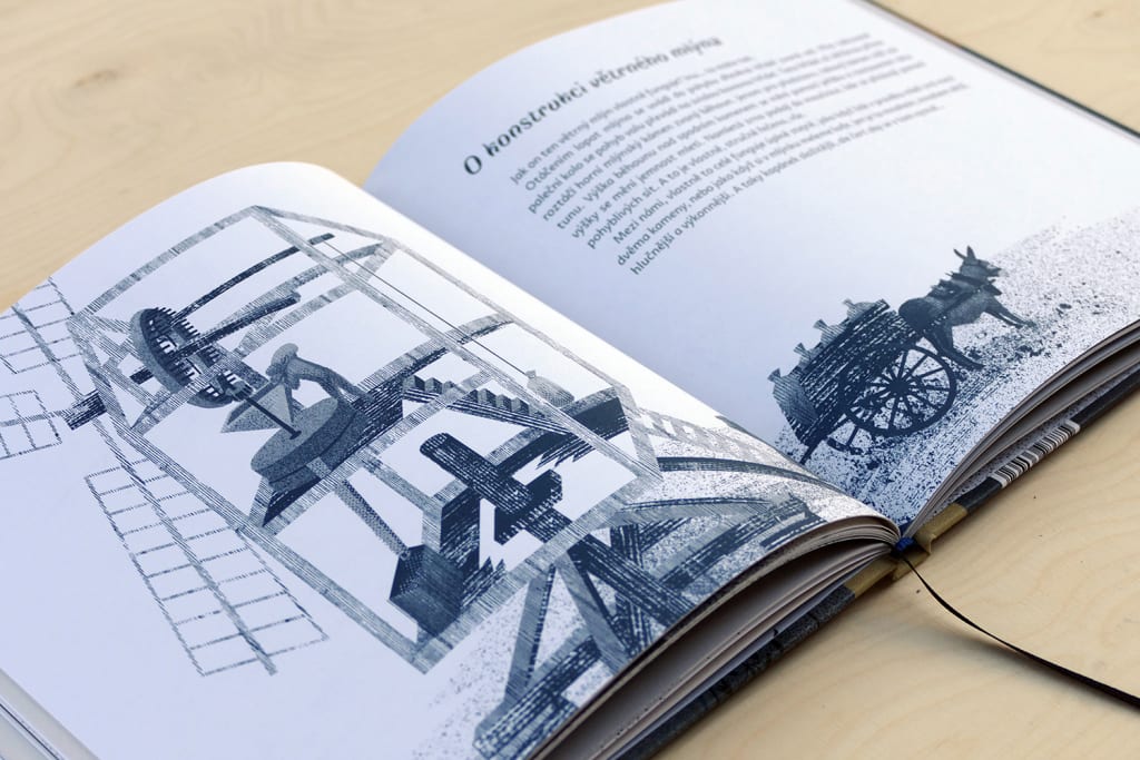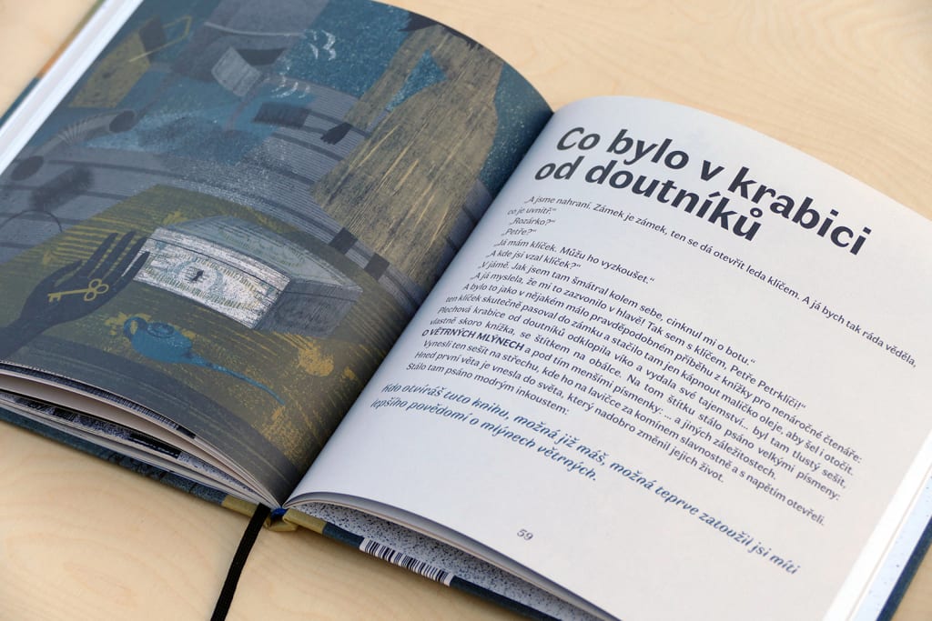 Ilustrace a grafická úprava knihy. Příběhu o hledání sebe sama a nalezení pokladu pod vlastním prahem, zarámovaný výkladem o větrných mlýnech.