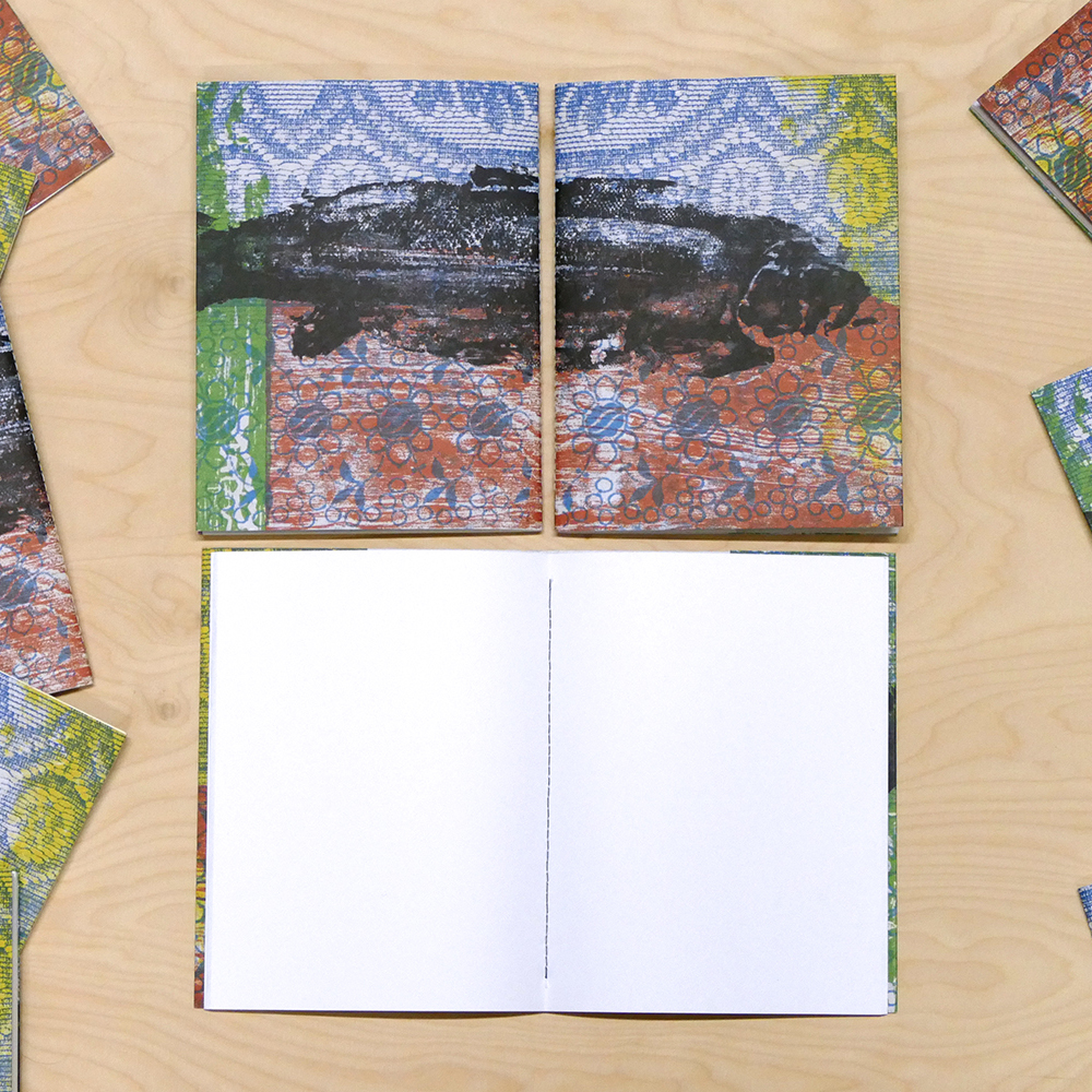 Obálka sešitu nese otisk duhového pstruha na prkně a krajce.
