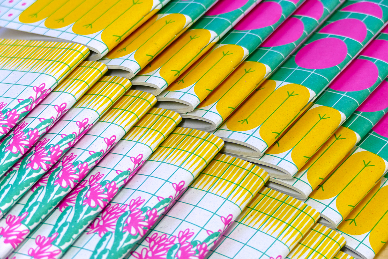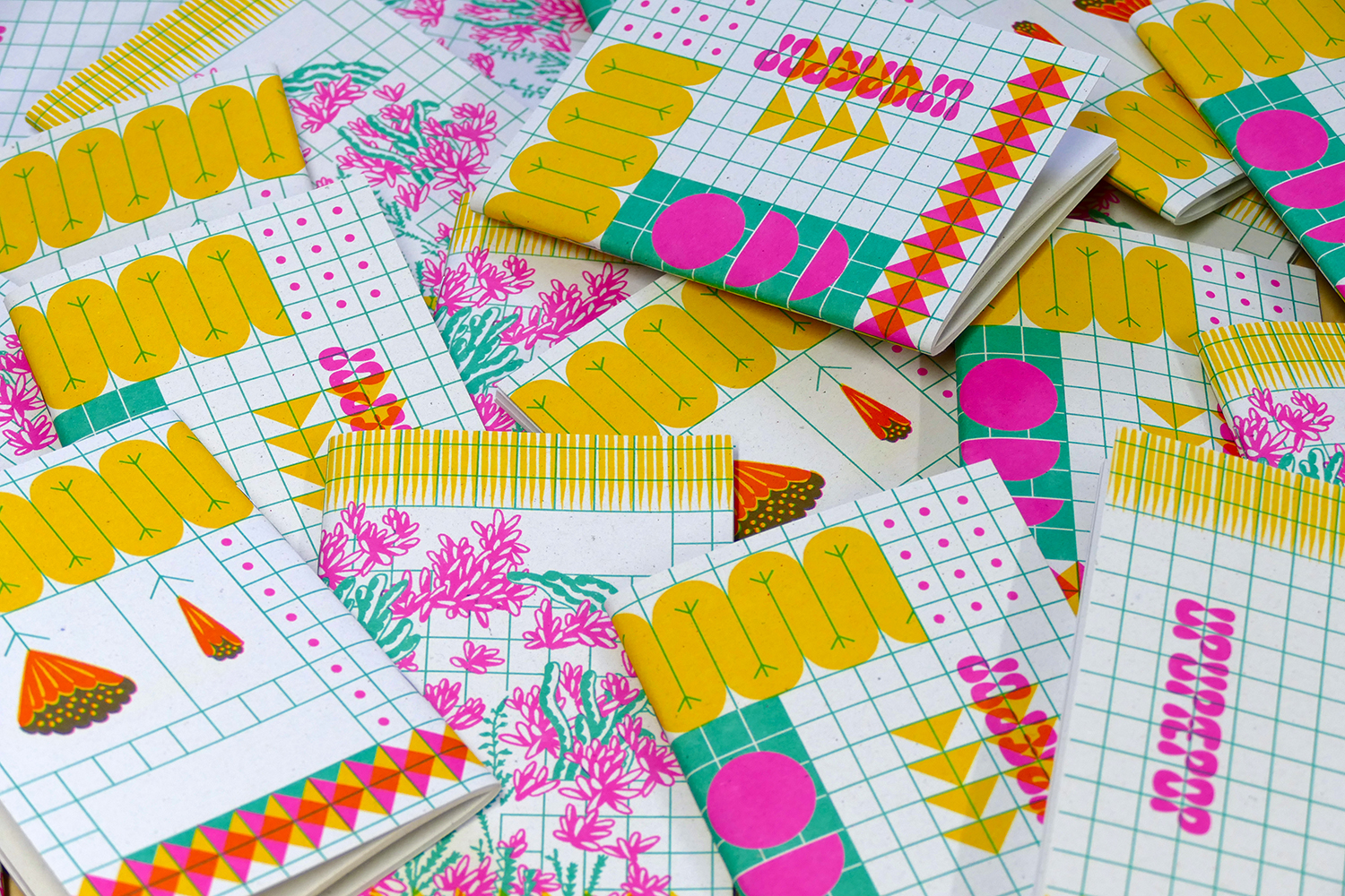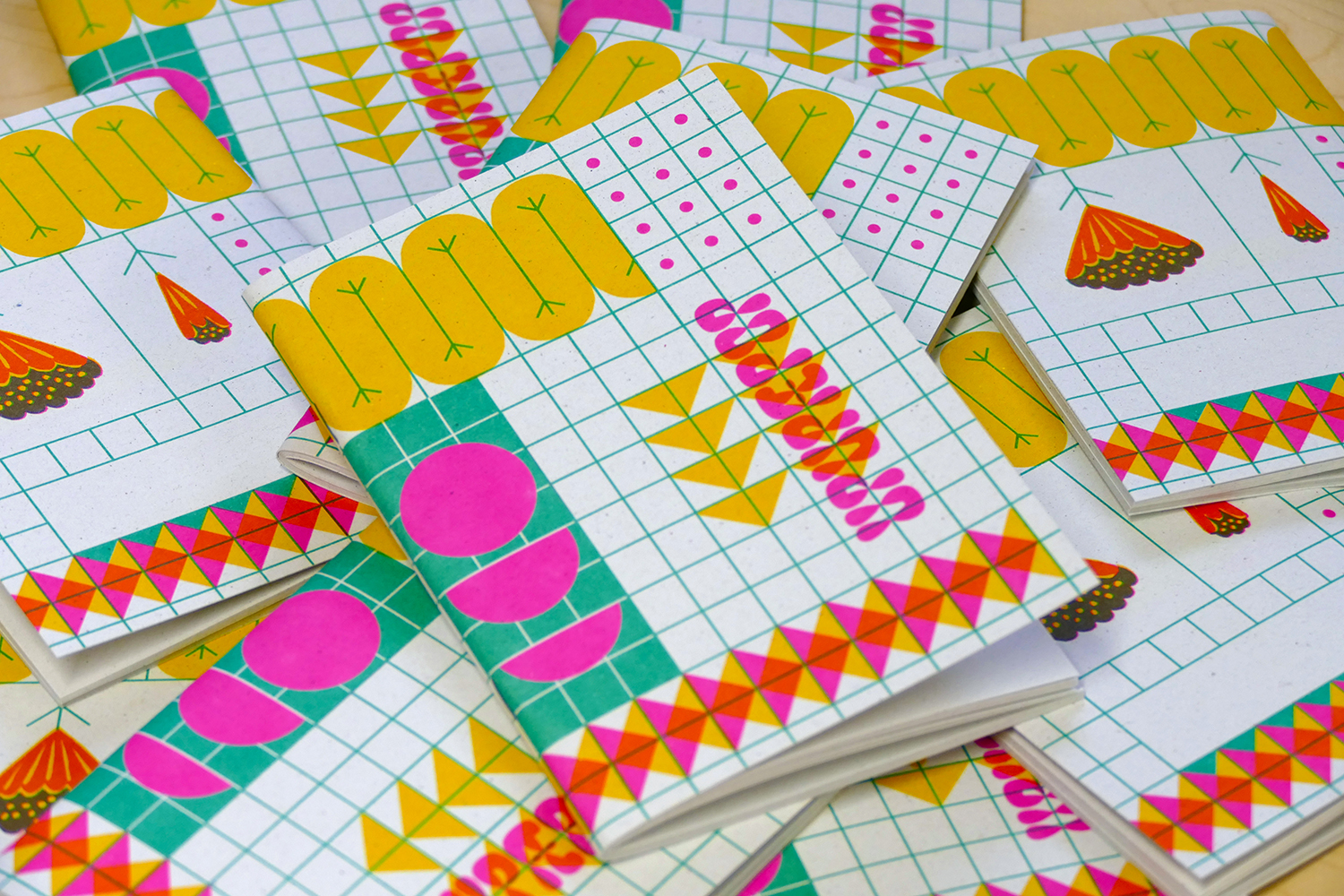 Kapesní sešity formátu 160×90 mm (A6). 60 stran recyklovaného papíru. Tisk přímými ofsetovými barvami.